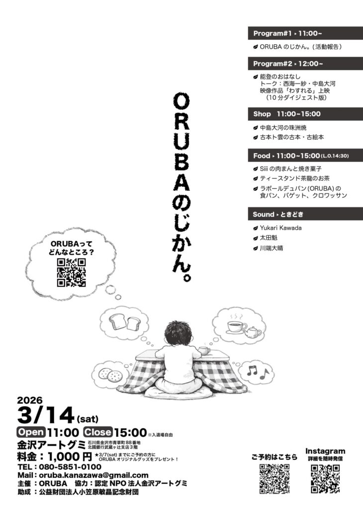 2024年3月からスタートし、活動・運営してきたORUBA。スタートからの変遷や活動の報告を兼ね、イベントを開催します。その名も「ORUBAのじかん。」
